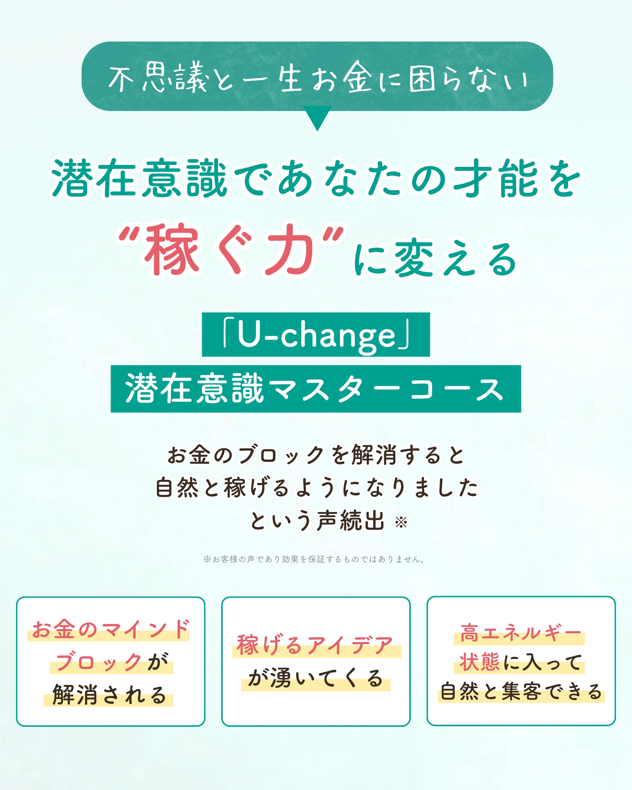 「Uchange」潜在意識マスターコースは、お金や稼ぐことに特化した潜在意識活用法を使って、